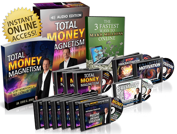 Total Money Magnetism (The Secret Neuroscience of Millionaires) is a six-step system that effortlessly and automatically re-programs ones brain into the brain of a millionaire. Written by world renowned hypnotherapist, multimillionaire, and celebrity success coach Dr. Steve G. Jones, this program is guaranteed to get results allowing anyone who uses it to experience the wealth, success and total financial freedom they’ve always wanted.